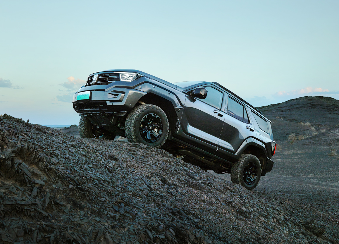 · 采用机械四驱,非解耦结构,配合三把锁,可以将整车动力传递到一个轮子上,即使单轮着地,也能保证整车扭矩的100%输出,实现极限场景的轻松脱困